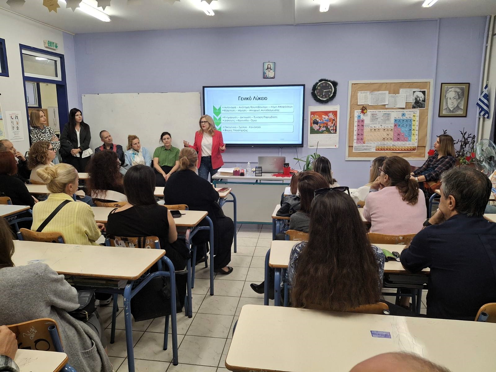 Με μεγάλη προσέλευση πραγματοποιήθηκε την Τετάρτη 22 Οκτωβρίου η ενημερωτική συνάντηση για τους γονείς και κηδεμόνες των μαθητών/ριών της Α’ Λυκείου. Σκοπός της συνάντησης, όπως τόνισε στην έναρξη η Διευθύντρια Αθηνά Γκριτζάλα, ήταν η ενημέρωση για τη νέα εκπαιδευτική βαθμίδα και η ανάδειξη των τρόπων με τους οποίους η οικογένεια και το σχολείο μπορούν να συνεργαστούν, για να υποστηρίξουν αυτή τη σημαντική μετάβαση των παιδιών.
